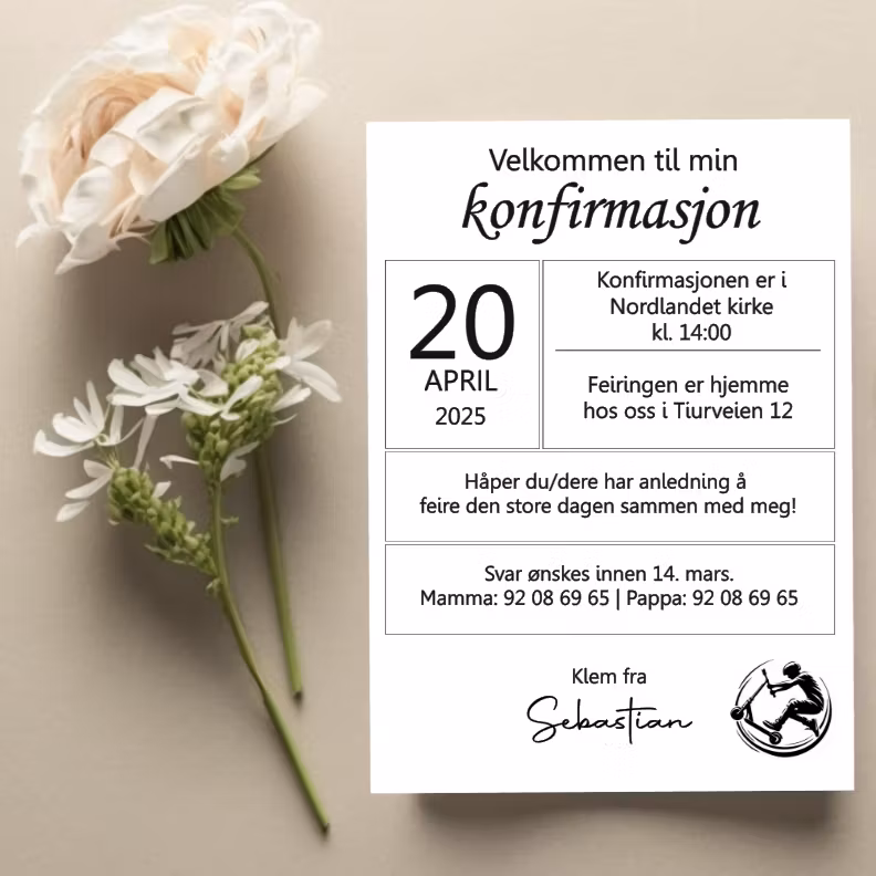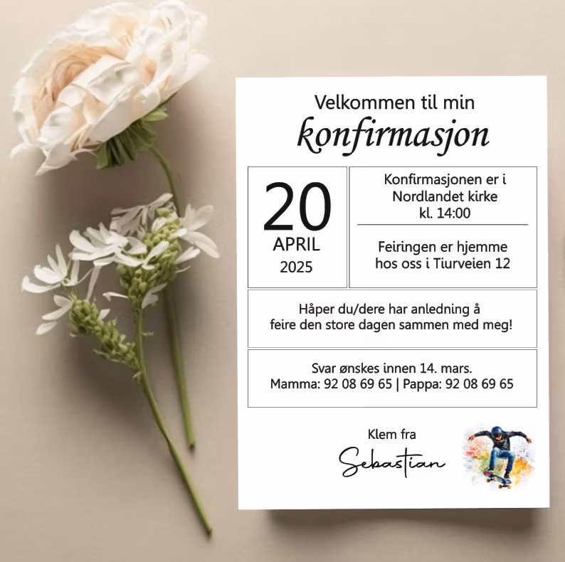 - Hvor konfirmasjonen skal være + klokkeslett.