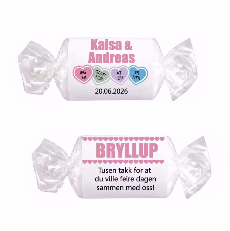 LoveHearts etiketter - rosa, bryllup