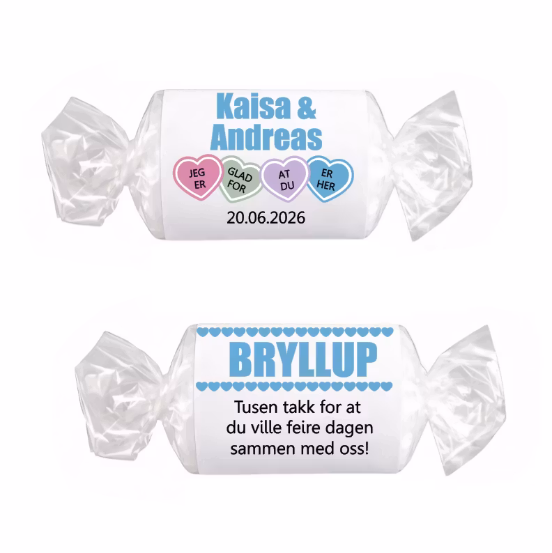 LoveHearts etiketter - blå, bryllup
