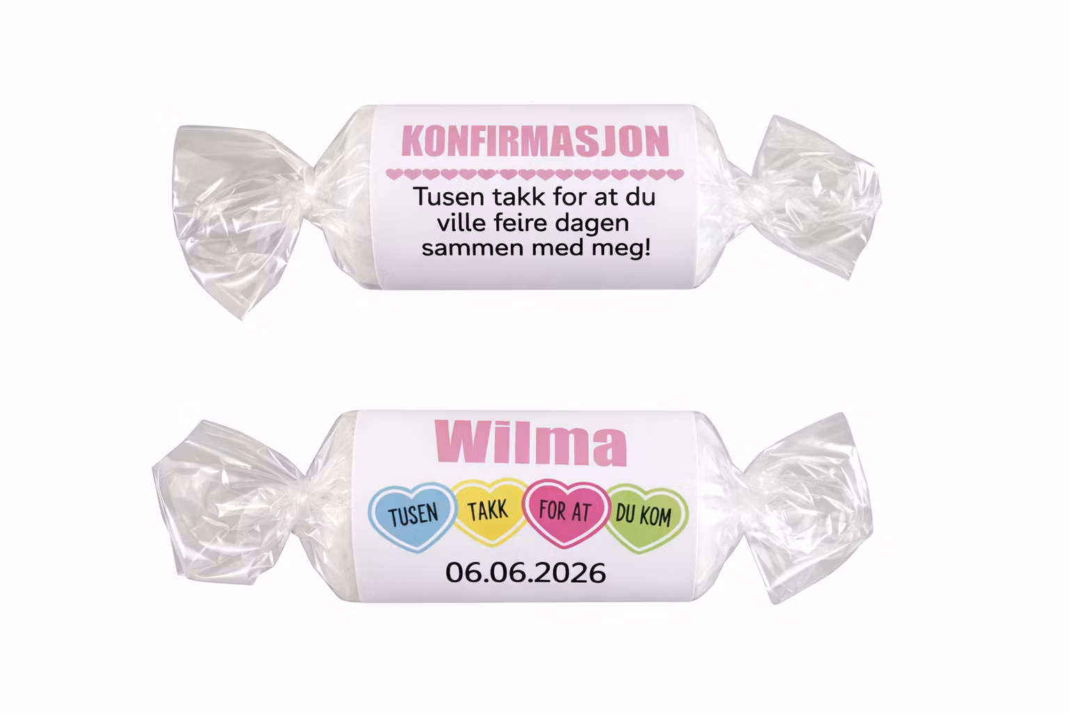 Love hearts etiketter, konfirmasjon rosa
