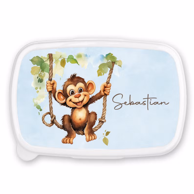 Ape på huske, matboks På lager Antall: 199,- Velg farge: Rosa matboks Blå matboks KJØP Matboks med barnets navn på! :)Velg i menyen om du ønsker rosa eller blå.Matboksen er BPA fri, den kan vaskes i vaskemaskinen, men anbefaler å vaske lokket for hånd.(Bilde to er kun for å vise fargene).