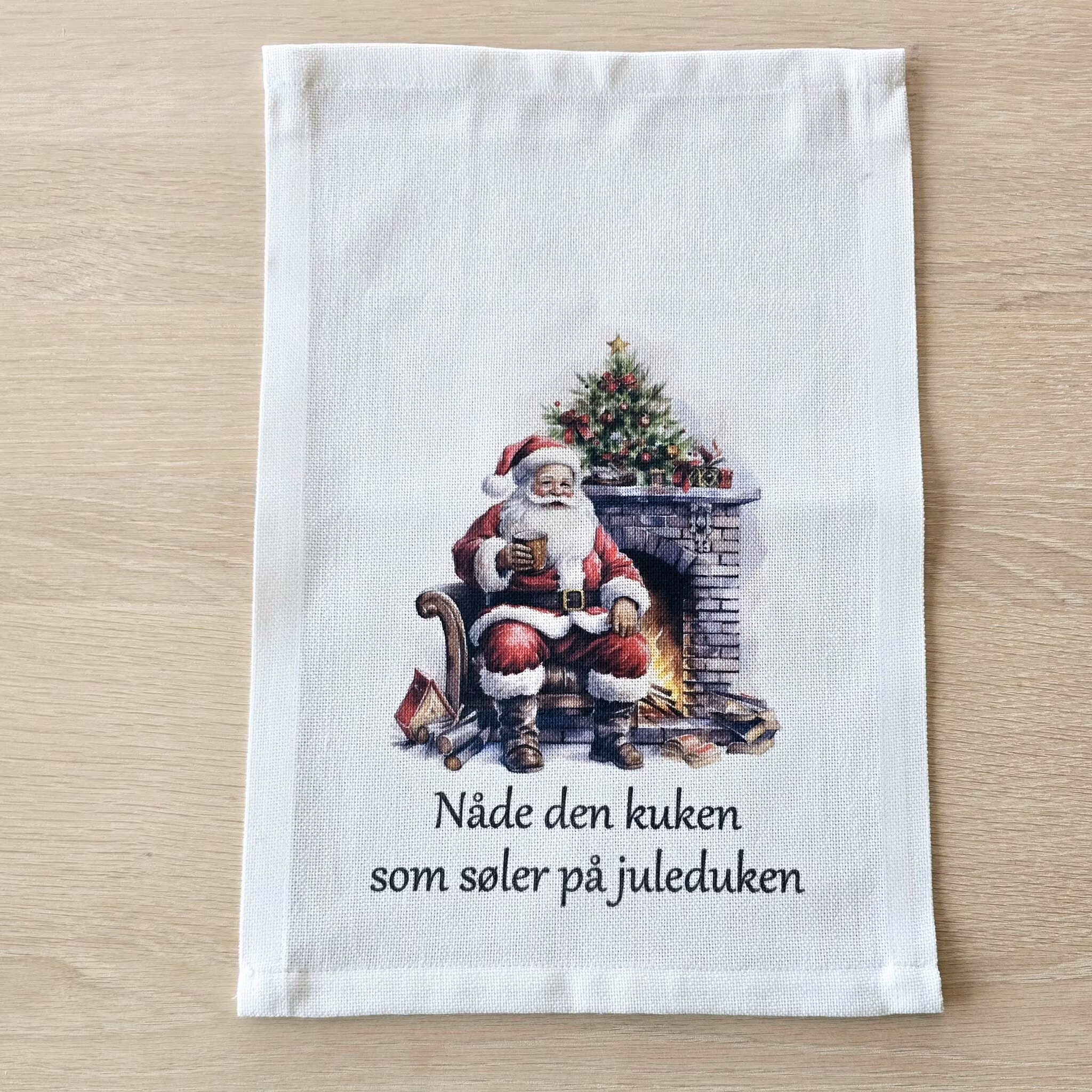 B-VARE: Nåde den... juleduken 19,- Produktet finnes dessverre ikke i lager. Morsom duk/brikke til å "pynte" bordet 😅Måler ca. 30 x 45 cm.Selges som B-vare da noen har svakt trykk, mens andre har noen små lyserøde merker etter trykket her og der.