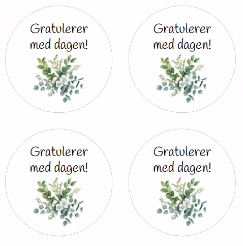 Eukalyptus - Gratulerer med dagen På lager 99,- KJØP Det er 24 klistremerker i en pakke 🩷Flotte klistremerker som kan festes på gaveesker, konvolutter, bordkort eller lignende.De er 40 mm i diameter.
