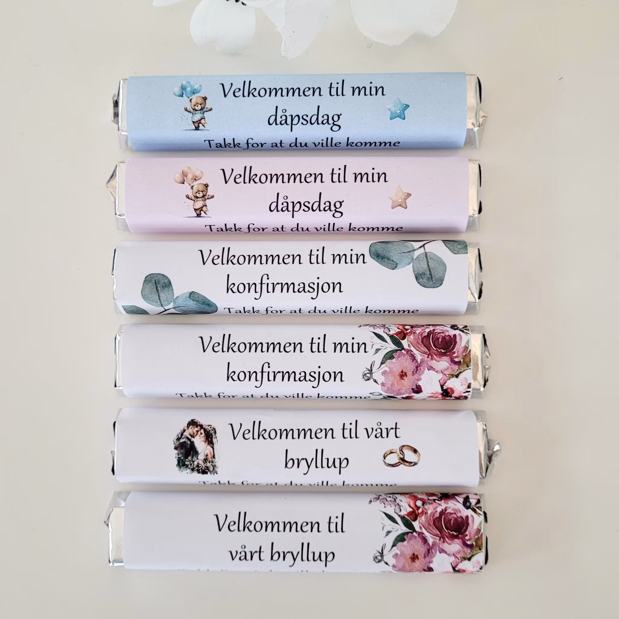 KinderMaxi etiketter med forhåndsskrevet tekst