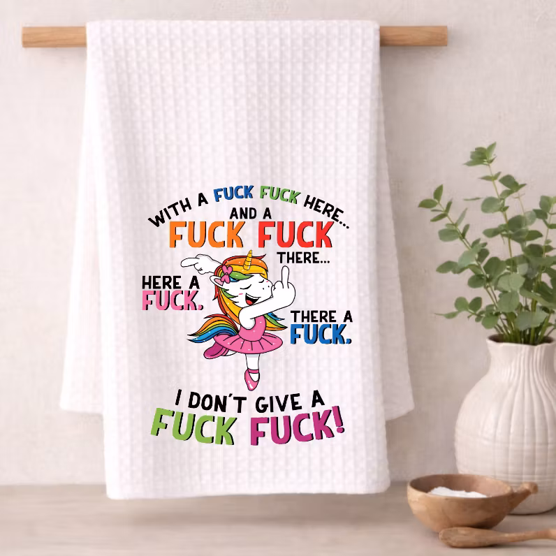 Kjøkkenhåndkle, fuck fuck På lager 149,- KJØP Kjøkkenhåndkle med print.Vaffelsøm, 100 % polyester.Størrelse: 40 x 60 cm.