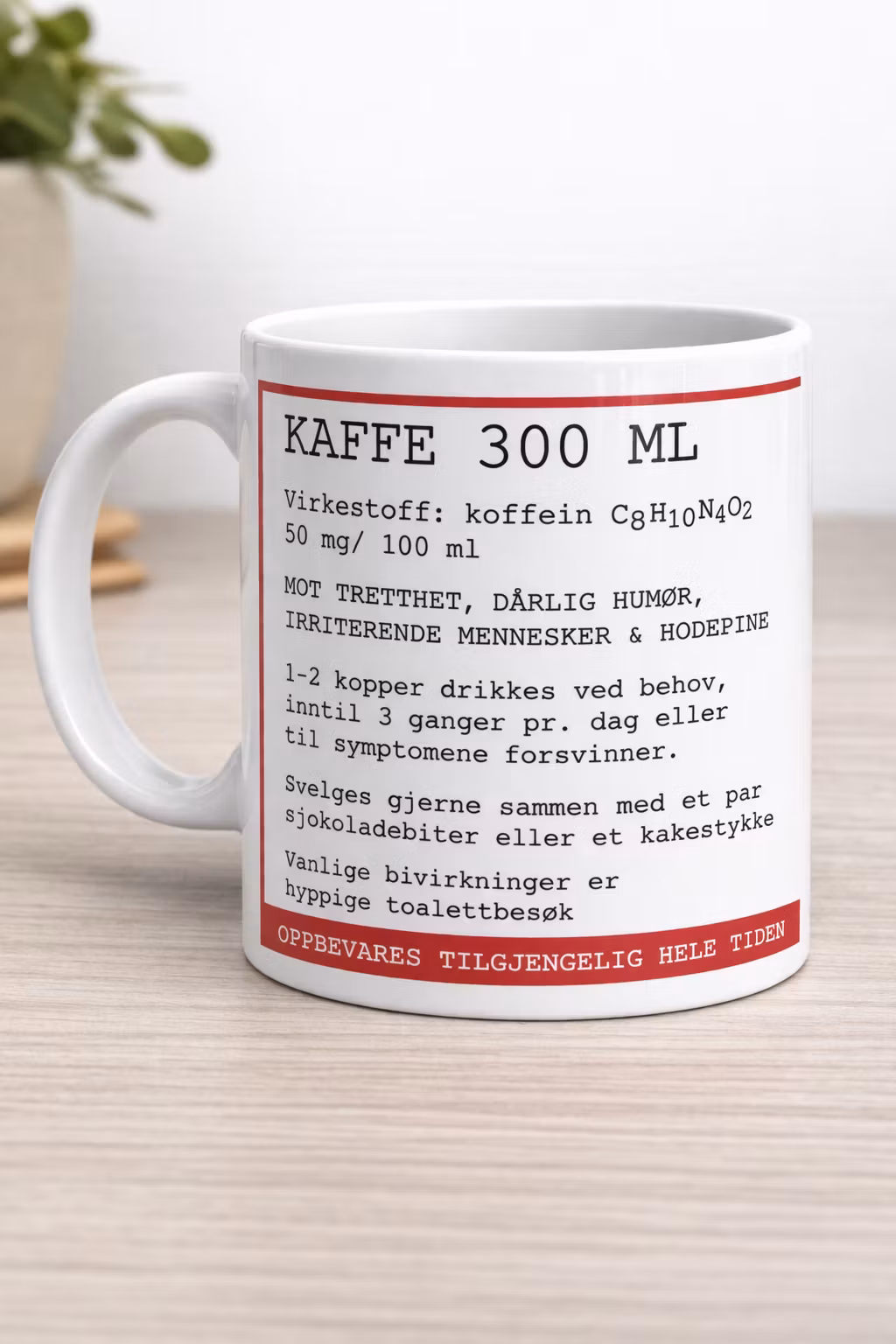 Resept: kaffe, kopp På lager 229,- KJØP Kopp med print! :) Rommer ca. 325 ml.Tåler oppvaskmaskin og mikro.