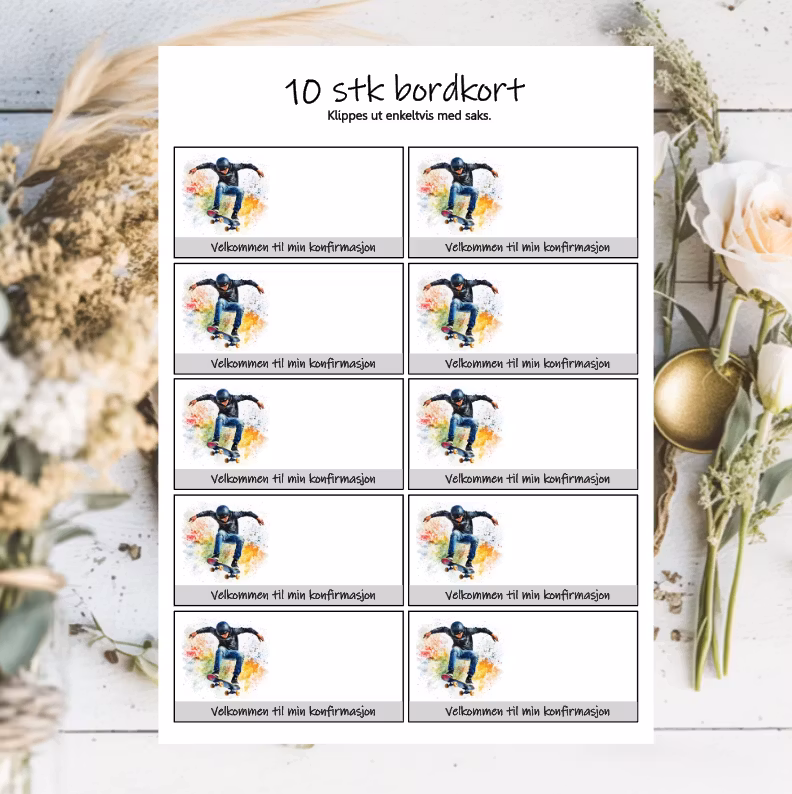 Bordkortene får samme motiv somkonfirmasjonsarkene.