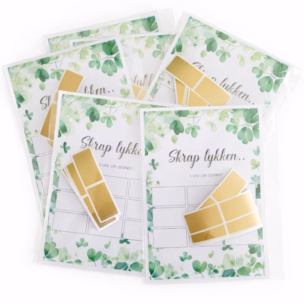 Skrap lykken.. På lager Antall: 49,- Velg antall: 1 stk 3 stk 5 stk 10 stk KJØP Skap litt spenning og gi et kort med en liten vri.Skriv inn potensielle premier/ gaver i tekstfeltene.Gaven som mottaker skal få skrives inn i tre av feltene.Skrapemerker medfølger.Kortet er i A5 og man kan skrive en hilsen på baksiden.