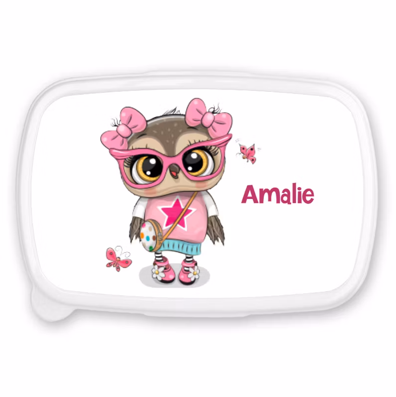 Ugle, matboks På lager Antall: 199,- Velg farge: Rosa matboks Blå matboks KJØP Matboks med barnets navn på! :)Velg i menyen om du ønsker rosa eller blå.Matboksen er BPA fri, den kan vaskes i vaskemaskinen, men anbefaler å vaske lokket for hånd.(Bilde to er kun for å vise fargene).