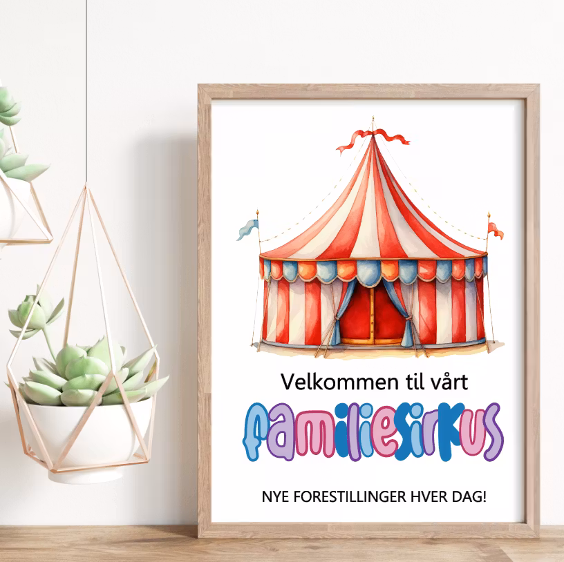 Velkommen til vårt familiesirkus På lager 79,- KJØP Morsom A4- plakat.Printet på 250 grams matt kartong.Ramme medfølger ikke!